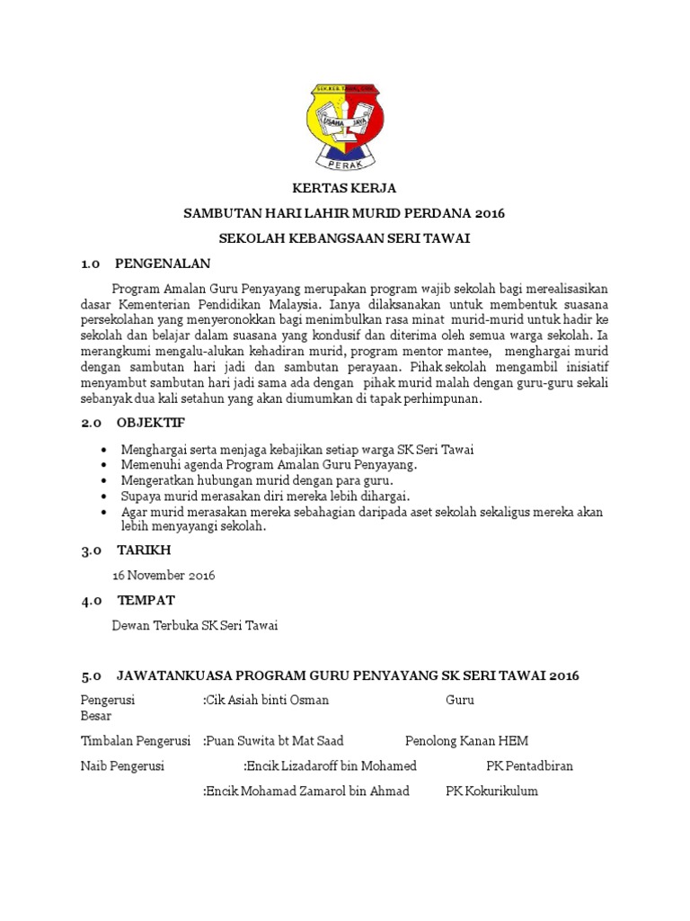 Kertas Kerja Sambutan Hari Lahir Murid Pdf