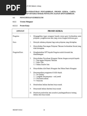MANUAL PROSEDUR KERJA URUSAN KURIKULUM 81 Pengurusan Jadual Waktu Induk Kelas dan Persendirian 811 Proses Kerja JAWATAN PROSES KERJA Pengetua 1. Sekiranya anda dipanggil bertugas ditempat baru tetapi anda mempunyai beberapa kesulitan untuk melapor diri pada tarikh yang ditetapkan. Manual prosedur kerja sekolah menengah.